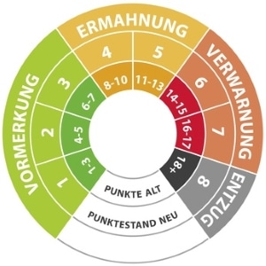Die Reform der Punkte in Flensburg brachte 2014 ein neues System mit sich. Folglich waren nicht mehr höchstens 18 Punkte möglich, sondern nur noch 8 Punkte bis zum Entzug der Fahrerlaubnis. Die Ahndung der Verkehrsverstöße durch Punkte wurde entsprechend angepasst.